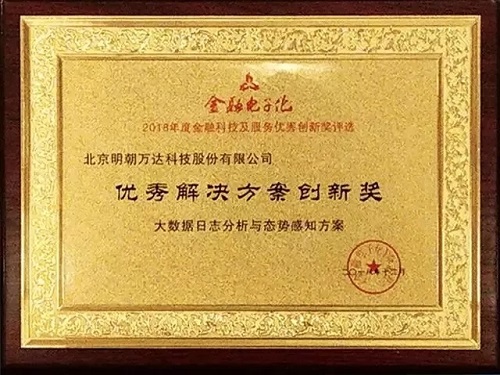 ■ 明朝萬達榮獲2018年度“金融科技優(yōu)秀解決方案創(chuàng)新獎”