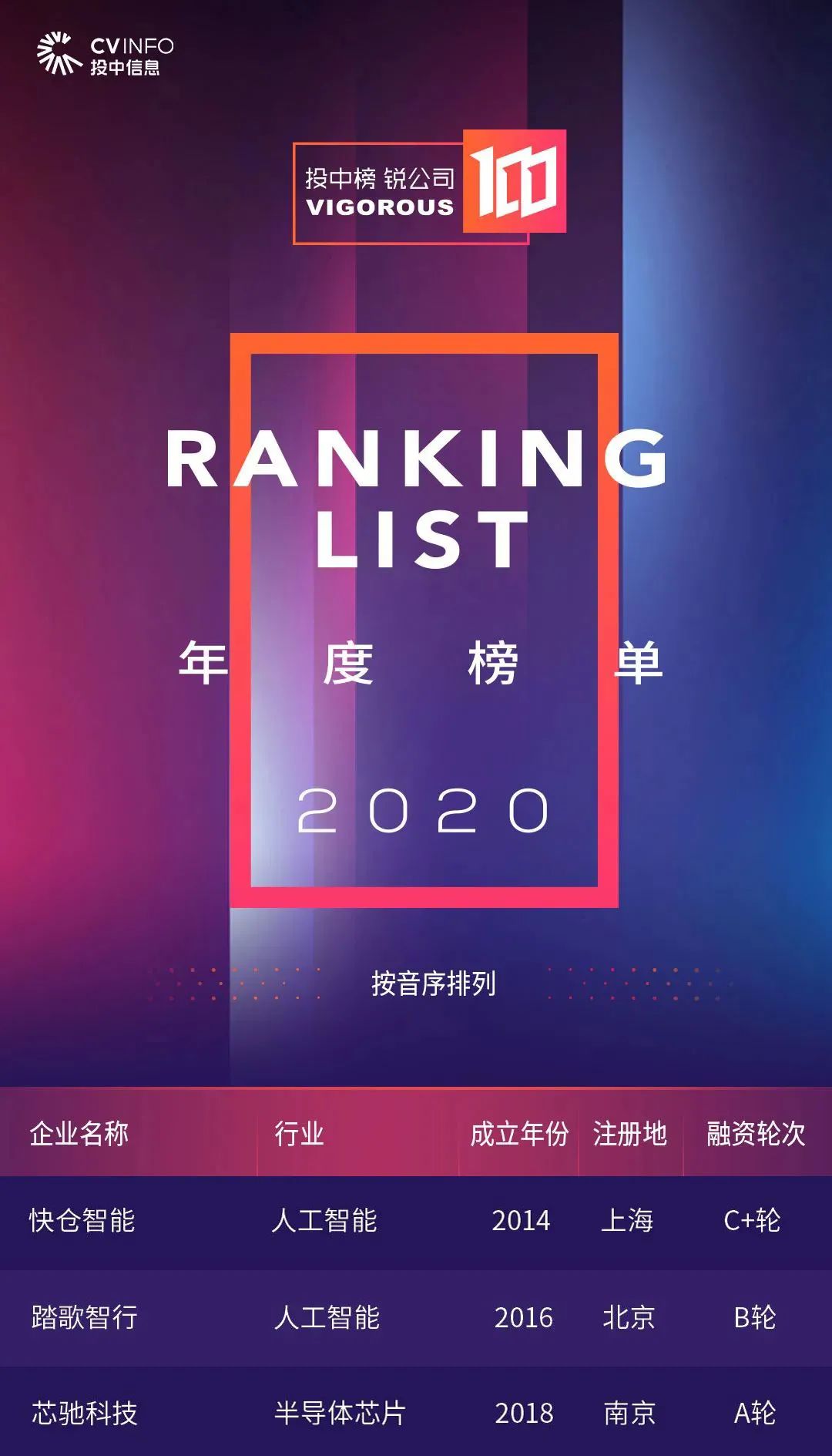 12月29日,2020投中榜·銳公司100榜單正式發(fā)布,合創(chuàng)資本所投快倉(cāng)智能、踏歌智行和芯馳科技三家企業(yè)實(shí)力登榜。
