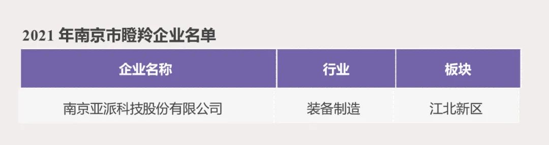2021年南京市獨(dú)角獸瞪羚企業(yè)名單,經(jīng)由企業(yè)自主申報(bào),各區(qū)(園區(qū))推薦,鯨準(zhǔn)數(shù)據(jù)庫(kù)篩選等方式匯總備選企業(yè)數(shù)據(jù),嚴(yán)格按照獨(dú)角獸、培育獨(dú)角獸、瞪羚企業(yè)標(biāo)準(zhǔn)審核評(píng)選而出。