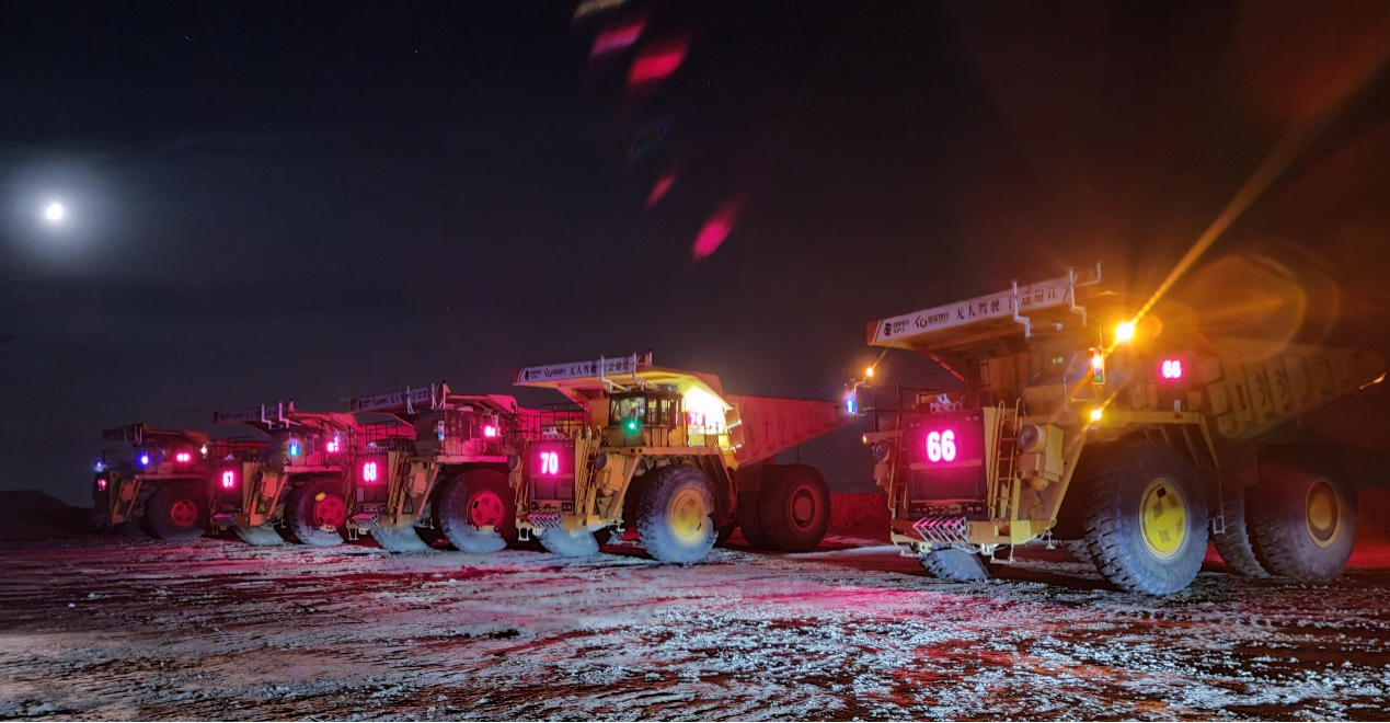 國電投霍林河礦區(qū):無人駕駛改造項目一期驗收的部分車輛夜間運行間隙