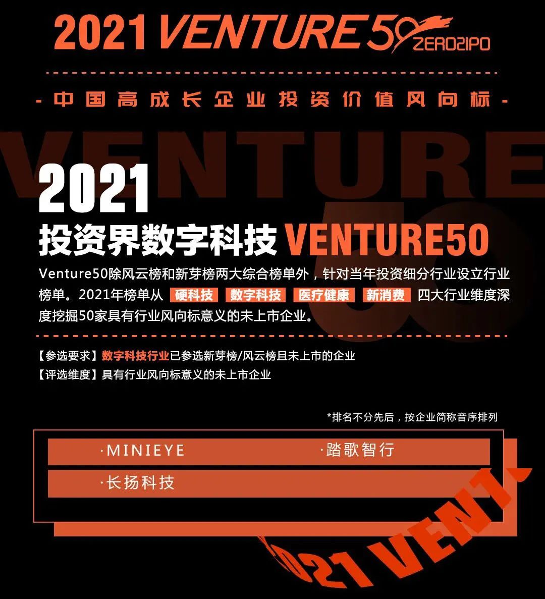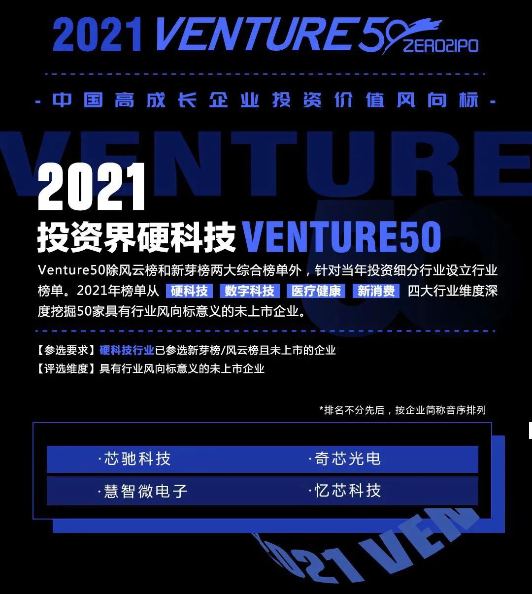 12月15日,由清科創(chuàng)業(yè)、投資界發(fā)起的2021 Venture50終評榜單正式出爐。合創(chuàng)團隊投資的慧智微電子、芯馳科技、奇芯光電、憶芯科技、MINIEYE、踏歌智行和長揚科技共計7家企業(yè)榮膺登榜。