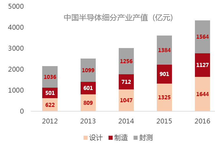 對(duì)于大陸來說,2016年也是一個(gè)具有標(biāo)志性意義的年份。在這一年,大陸的IC設(shè)計(jì)產(chǎn)值達(dá)到1644億元,首次超過封測(cè)產(chǎn)值,也首次超過臺(tái)灣的IC設(shè)計(jì)產(chǎn)值。在此基礎(chǔ)上,2017年,更是增長到2073億元。也就是說,目前,我們距離國家規(guī)劃的2020年的3500億元的目標(biāo),還有1500億元的空間,平均下來,每年差不多有500億的市場(chǎng)增長空間。所以,我們的觀點(diǎn)是,產(chǎn)業(yè)轉(zhuǎn)移將帶動(dòng)半導(dǎo)體行業(yè)的地域轉(zhuǎn)移,中國半導(dǎo)體產(chǎn)業(yè)迎來國產(chǎn)化黃金時(shí)期,今后幾年預(yù)計(jì)將保持26%以上的年復(fù)合增長率。