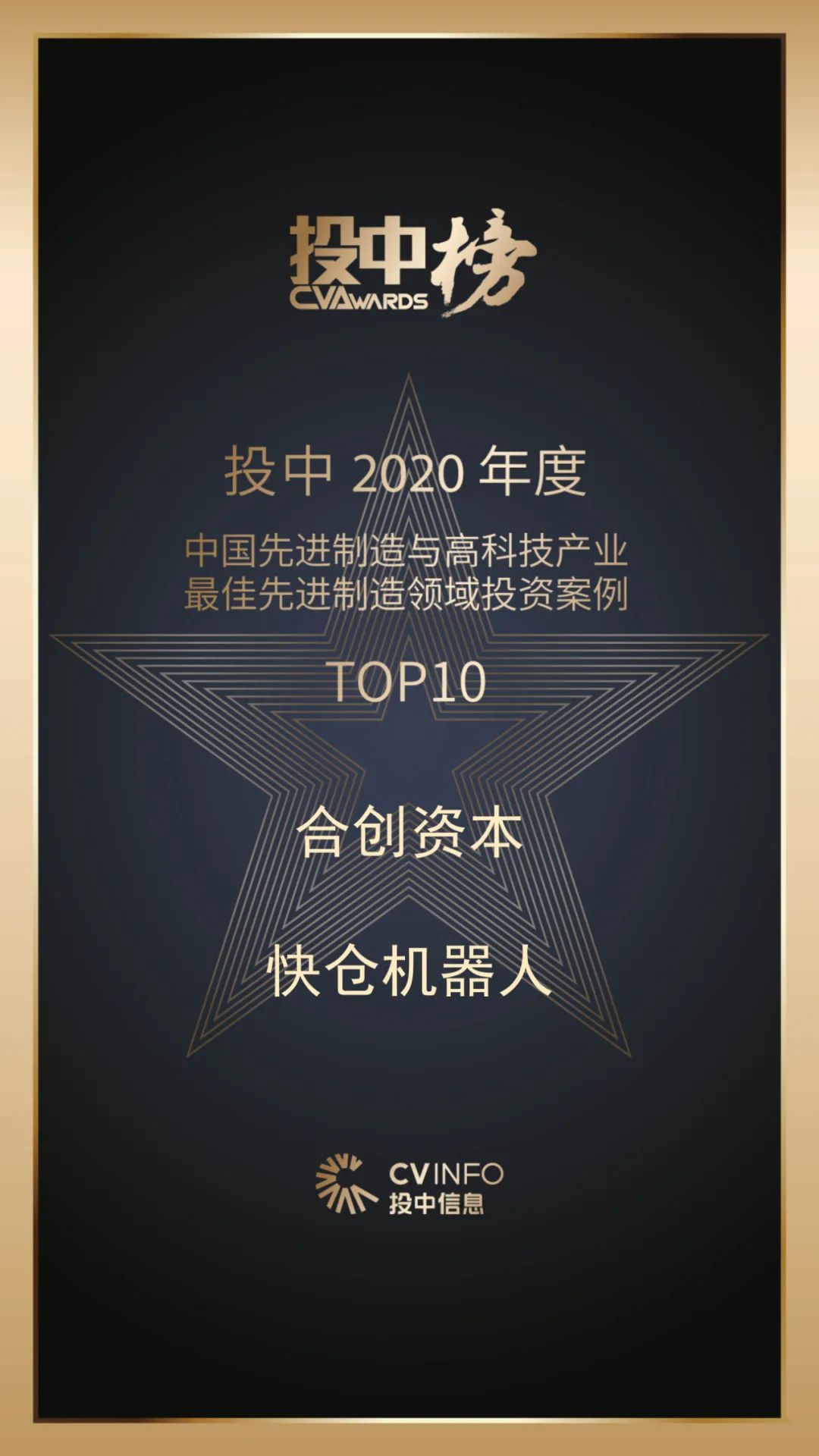 在此次峰會上,投中2020年度榜單同步揭曉,合創(chuàng)資本榮登投中2020年度“中國最佳創(chuàng)業(yè)投資機構(gòu)TOP100”、“中國最佳中資創(chuàng)業(yè)投資機構(gòu)TOP50”,由合創(chuàng)資本投資的快倉機器人榮獲“中國先進制造與高科技產(chǎn)業(yè)最佳先進制造領(lǐng)域投資案例TOP10”。