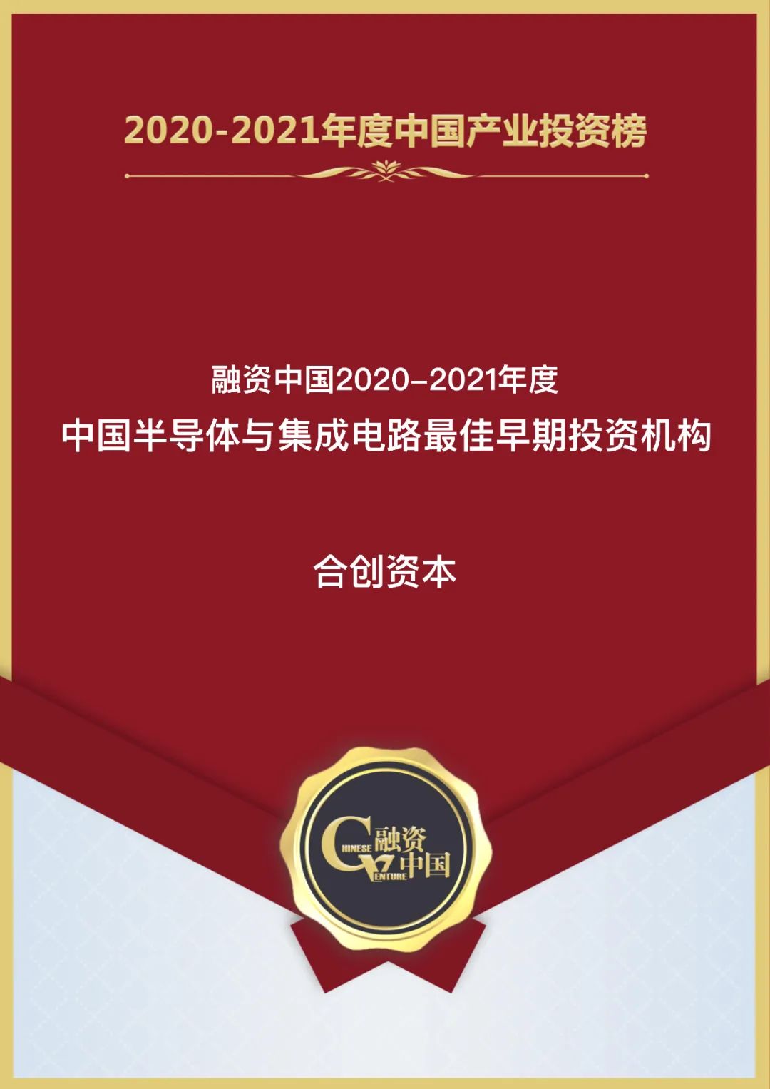 融資中國2020-2021年度中國產業(yè)投資榜評選綜合考慮投資機構近一年來的管理資金規(guī)模、募資能力、投資能力、已投項目估值金額變化及已投項目再融資比例、退出情況、媒體視角等指標情況,以客觀展現國內投資機構當前的綜合實力。合創(chuàng)資本此次入選半導體與集成電路產業(yè)榜單體現了業(yè)界對合創(chuàng)團隊的認可。早在2013年,合創(chuàng)團隊就已開始了在半導體與集成電路領域的投資布局,截至目前,合創(chuàng)資本在半導體與集成電路領域已投資30余家細分領域具有代表性的設計及應用公司。