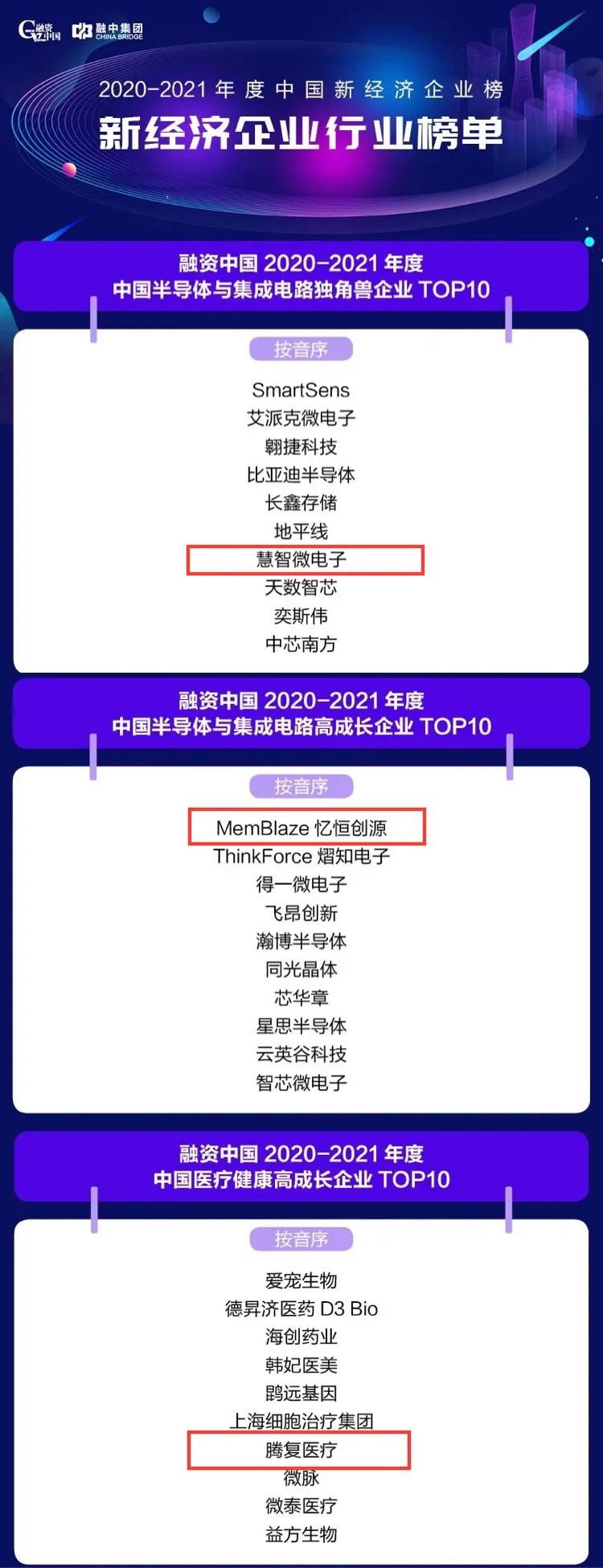 此次峰會上,融資中國2020-2021年度中國產業(yè)投資榜和中國新經濟企業(yè)榜同步揭曉,合創(chuàng)資本榮登2020-2021年度“中國半導體與集成電路最佳早期投資機構”榜單,合創(chuàng)資本早期投資共計3家企業(yè)榮譽登榜,分別是:慧智微電子榮獲“中國半導體與集成電路獨角獸企業(yè)TOP 10”、憶恒創(chuàng)源榮獲“中國半導體與集成電路高成長企業(yè)TOP 10”、騰復醫(yī)療榮獲“中國醫(yī)療健康高成長企業(yè)TOP10”。