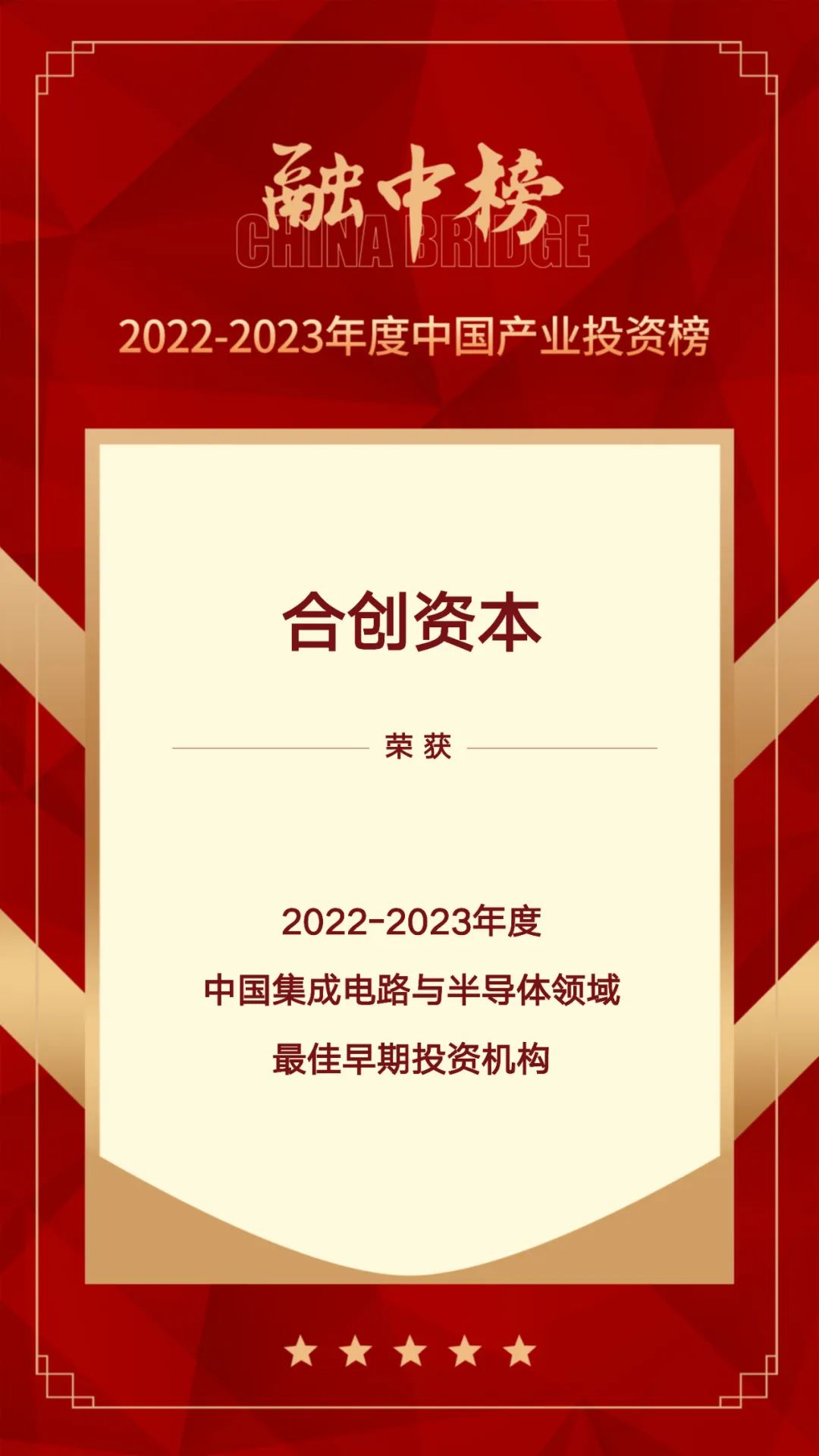 7月21日,融中2022-2023年度中國產業(yè)投資榜單發(fā)布,合創(chuàng)資本榮獲“2022-2023年度中國集成電路與半導體領域最佳早期投資機構”。
